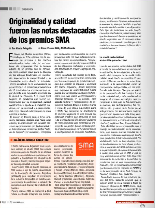 Acompañan Últimas noticias noticias La feria del mueble argentino llega a Córdoba con su 19ª edición Ver Más noticias Misiones dirá presente en la feria más importante del mueble argentino Ver Más noticias Originalidad y calidad fueron las notas destacadas de los premios SMA Ver Más noticias FIMAR 2025 ya tiene fecha y lugar Ver Más Ver Todas las Noticias Enterate de todas las novedades Suscríbete DIRECCIONdireccion@asoma.arADMINISTRACIÓNadministracion@asoma.ar+54 9 3573 40-1594COMERCIALcomercial@asoma.ar+54 9 11 7033-6405 Seguinos en redes sociales Instagram Facebook Youtube Linkedin